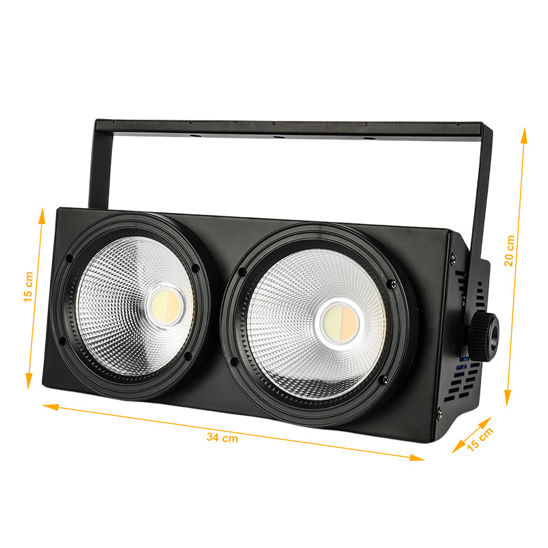 Light4Me 2Lite Blinder is a professional lighting equipped with two powerful LEDs of 125 watts each, operating with white light, the intensity of which is further enhanced by effective reflectors. The white color temperature is adjustable from ✅ warm to cold. Both LEDs can operate independently, allowing continuous or alternating illumination and dynamic strobe effects. Using a linear dimmer, the user has full control over the intensity of the emitted light, providing smooth adjustment for stage needs.