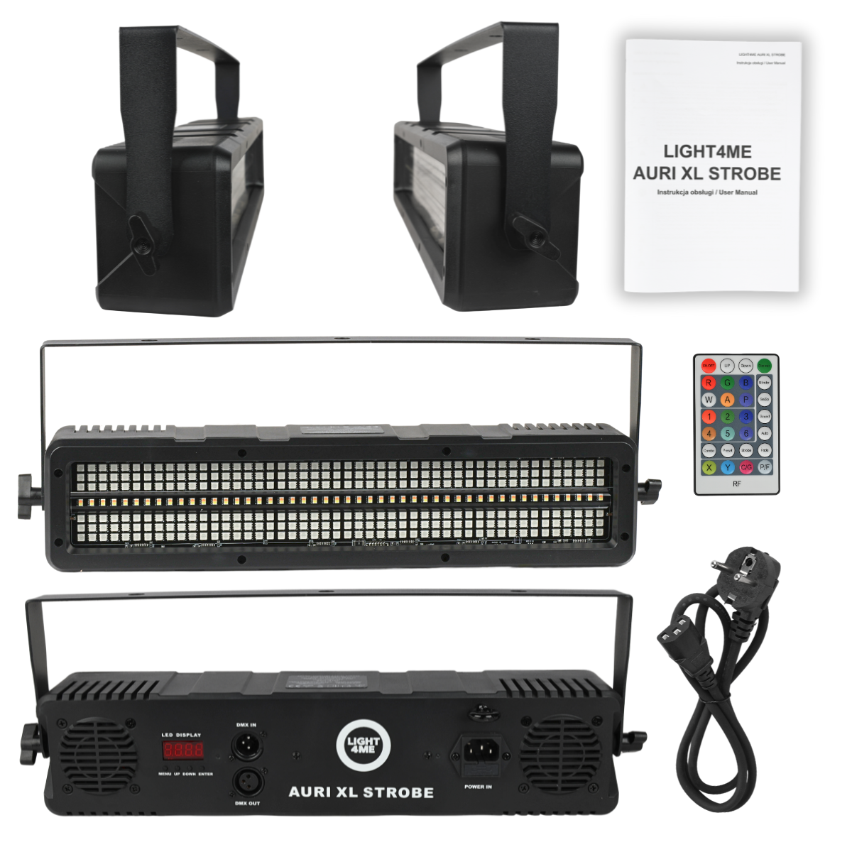 Are you looking for a lighting effect that really makes an impression❓ Light4Me Auri XL Strobe is an advanced LED strobe that is perfect for the stage, club, corporate event or home DJ party. ✅ Thanks to 48 CW/A (cool white, amber) SMD3030 LED 2-in-1 LEDs and as many as 288 RGB (red, green, blue) SMD5050 LED 3-in-1 LEDs, the device generates intense flashes and smooth color transitions ☑️ It is a professional tool, and with its intuitive operation and RF wireless remote control, it is also suitable for home party enthusiasts ✨ Whether you are a DJ, event organizer, or venue owner, the model is a sound investment ⚡