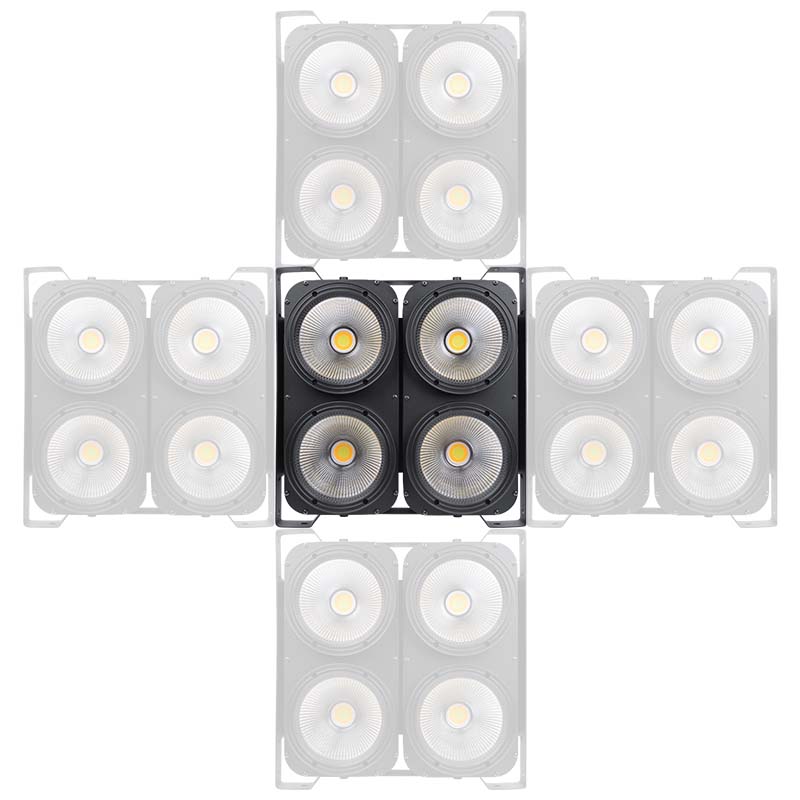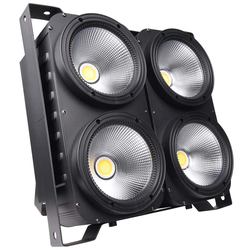 Light4Me Blinder LED 4x100W is a fully ✅ professional stage spotlight with four 100-watt COB LEDs, operating with warm white light and cold white light. The illuminator allows you to create an amazing atmosphere during various types of events, illuminate the stage and obtain stroboscopic effects. It is an irreplaceable working tool for lighting engineers at concerts, during performances in community centers, theaters, dance clubs and discos, as well as for ✅ mobile DJs and event teams. If you need to intensively illuminate a stage, dance floor or any interior, Light4Me Blinder LED 4x100W is definitely the spotlight for you.